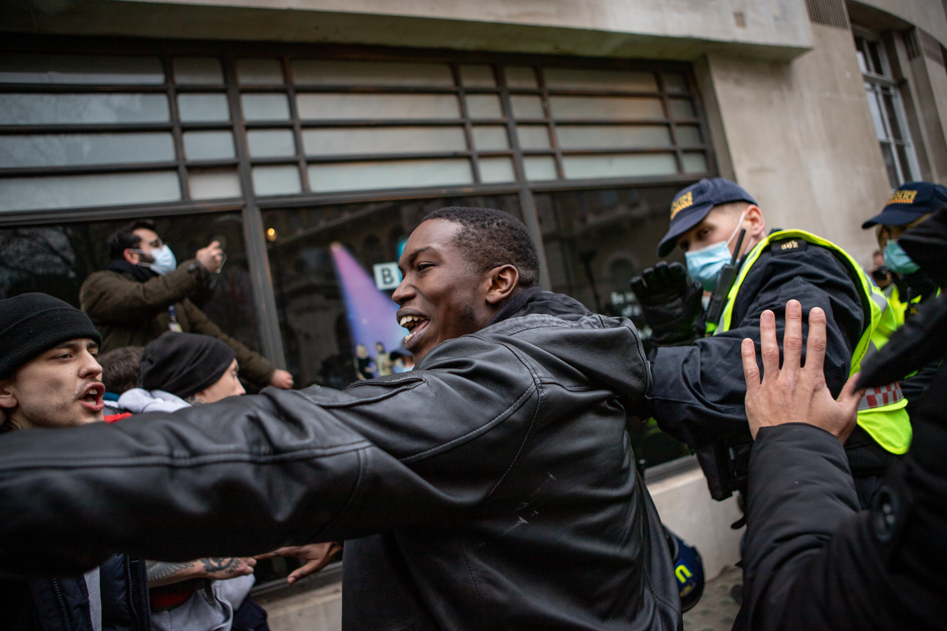 Tensions boiled over as police and demonstrators clashed during what seemed to be Londons largest anti-lockdown protest so far, just 3 days before the anniversary of the beginning Englands lockdown.